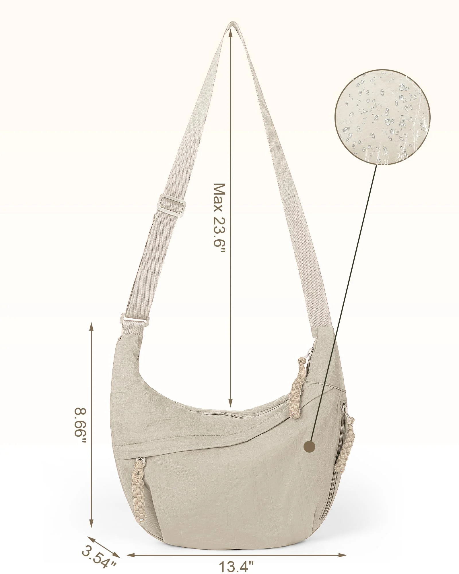 Perfectly Sized for Everyday Use: Our nylon crescent bag, measuring 13.4 inches wide and 8.66 inches high, perfectly balances spaciousness and sleek design for everyday use. With an adjustable shoulder strap that extends up to 23.6 inches, you can easily switch between classic shoulder carry and trendy crossbody style for ultimate versatility and comfort.